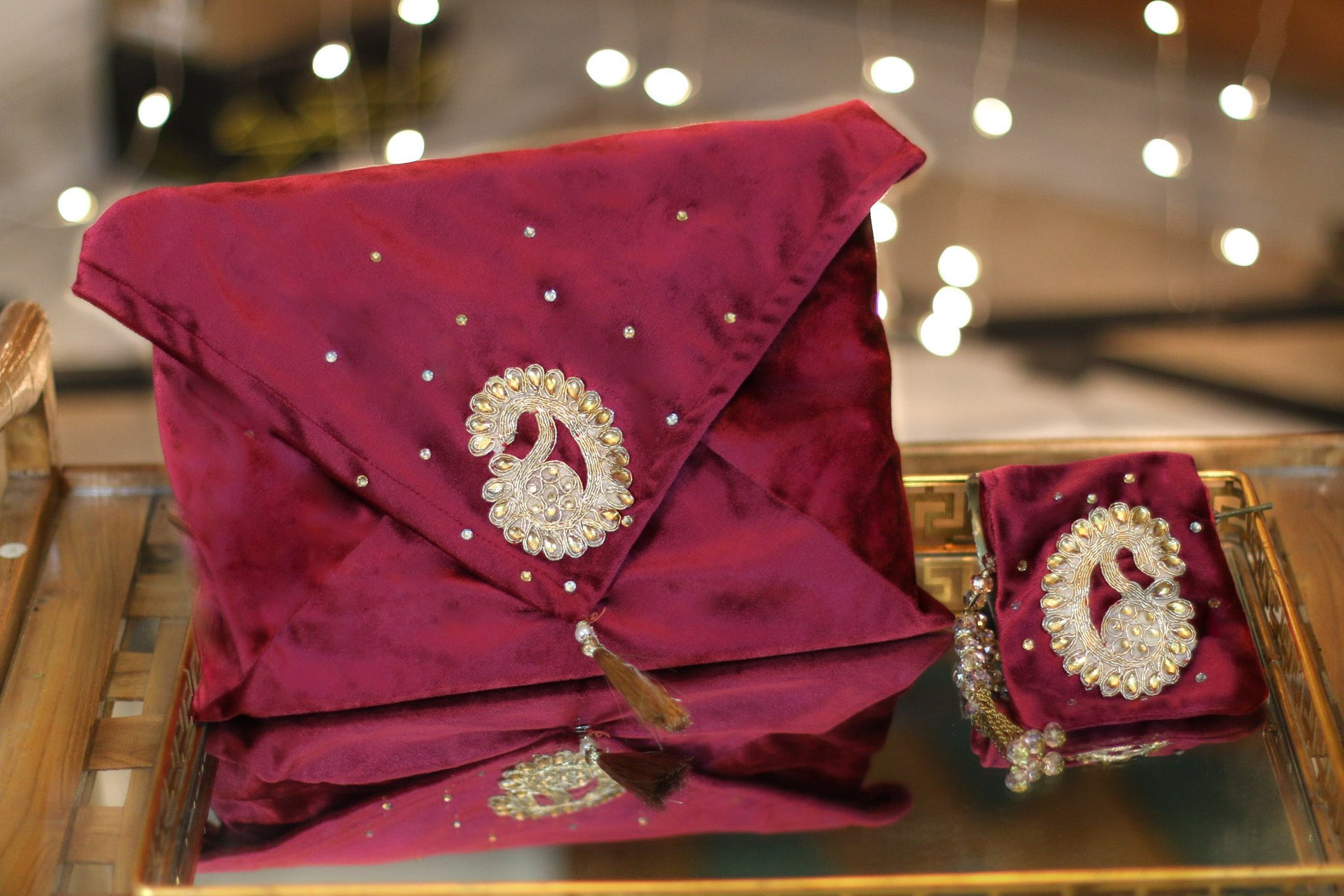 Set of 2 - Luxe Maroon Velvet QC-010 Quran & Tasbeeh Cover
